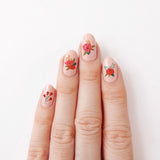 Floral nail decal sheet for manicures. Fun autumn inspired water slide nail decals featuring original designs of cute flower arrangements and autumn foliage. Fun, girly, and trendy. You get one sheet of 48 designs to mix and match.